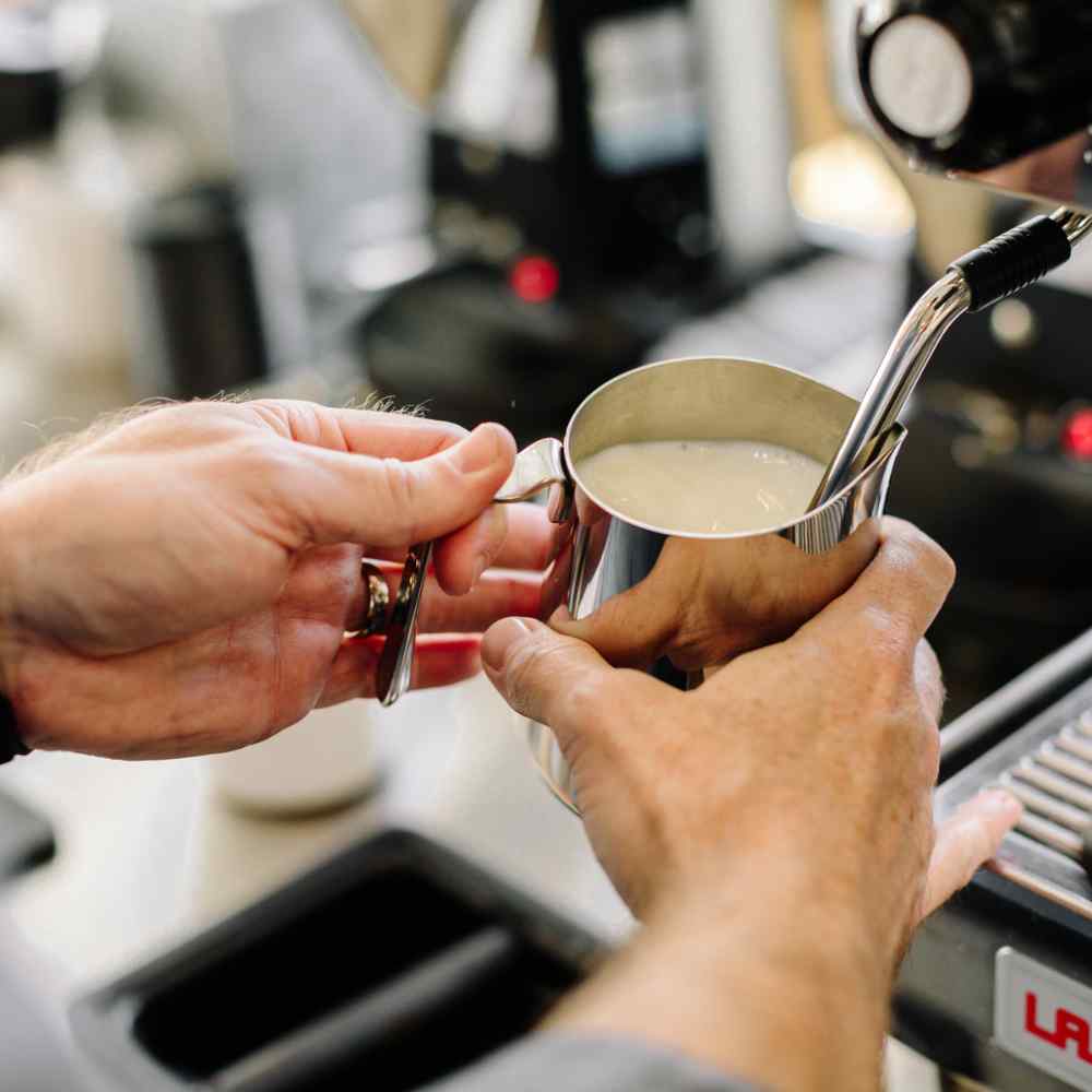 Su creación es el resultado de varias pruebas con baristas. El mango abierto es intencional y permite que sostengas el lechero de la forma que quieras.