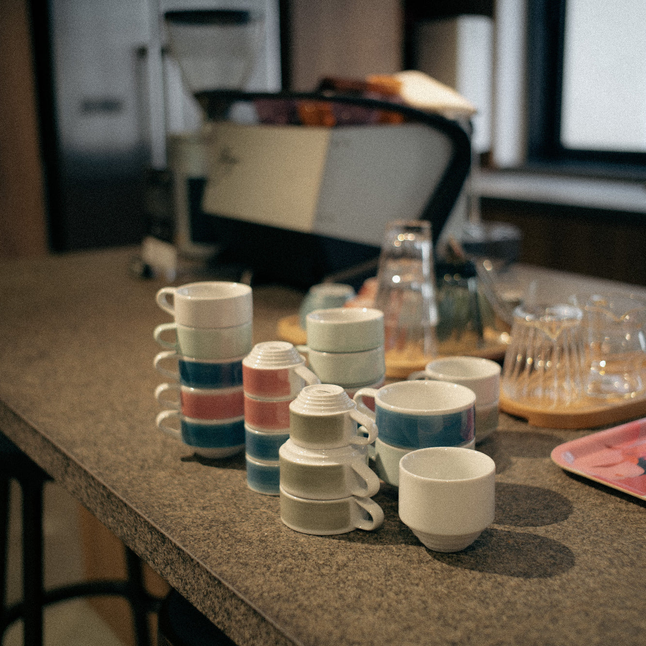 La familia Deco: Esta taza de 220ml es parte de una colección que incluye desde tazas de espresso (60ml) hasta cuencos de catación (200ml), todos diseñados para apilarse entre sí y crear la estación de café más organizada y vanguardista.