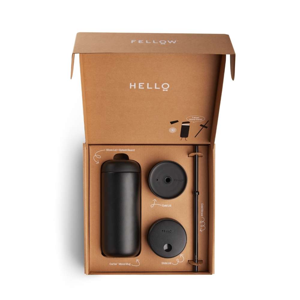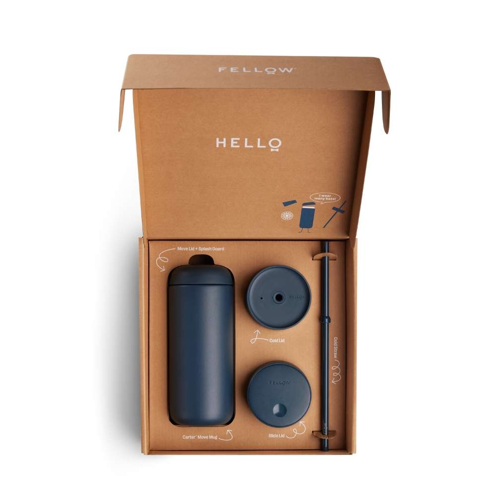Incluye: Carter Move Mug 16OZ, Tapa tradicional Move + rejilla antisalpicadura, Tapa fria + bombilla y Tapa slide